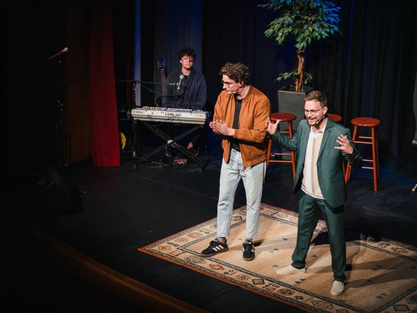 Gostitelja Nejc Šmit in Dino Kapetanović že leta zabavata občinstvo na vedno razprodanih predstavah v Radovljiški graščini in v Šmeksu. Gostila sta znane ljudi iz vseh vetrov. Gašperja Berganta, Ceneta Prevca, Miho Deželaka, Tanjo Žagar, Jano Morelj, Tilna Artača, Vili Resnika in mnoge druge.